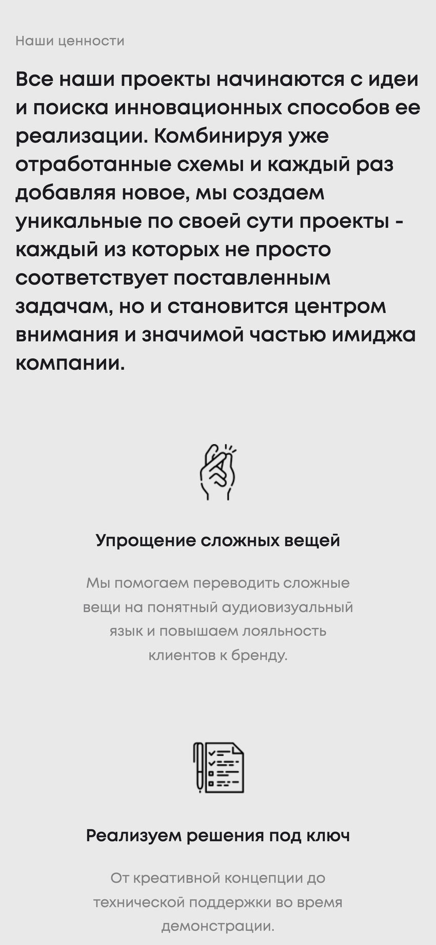 Результат — современная онлайн-платформа, которая подчёркивает творческую смелость и высокий профессионализм агентства, сохраняя при этом лёгкость и интуитивность взаимодействия.
